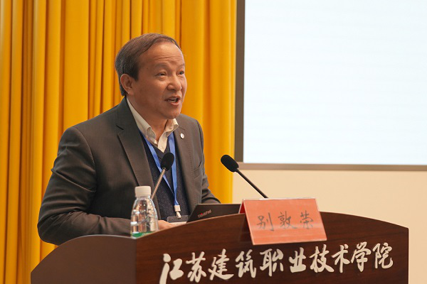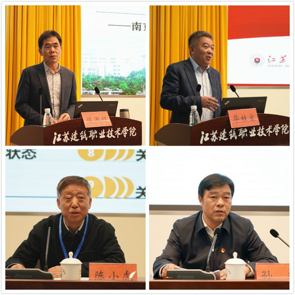 江蘇建筑職業(yè)技術學院黨委書記孫進教授代表學校,對蒞臨會議的領導嘉賓、專家同仁表示熱烈歡迎,簡要介紹學校40年來的發(fā)展歷程。40年來,學校確守育人初心,緊貼區(qū)域發(fā)展需求,緊跟行業(yè)發(fā)展要求,取得了江蘇高水平高職院校、江蘇卓越高職院校、國家優(yōu)質(zhì)高職院校、國家示范性高職院校等重要發(fā)展成就,在雙高評審中入選26個、江蘇省為數(shù)不多的一個A類專業(yè)群。他指出,邁進新時代,學校堅持立德樹人根本任務,堅持產(chǎn)教融合發(fā)展主線,圍繞“一流高職名校”奮斗目標,深入推進“六大發(fā)展戰(zhàn)略”,深入開展文化育人,不斷深化教育教學改革,加快推進學校高質(zhì)量發(fā)展,為“強富美高”新江蘇建設造就更多的高素質(zhì)技能人才。最后,孫進書記表示將竭誠做好服務保障,希望與會領導專家一如既往地關心、支持學校教育改革事業(yè)的發(fā)展。